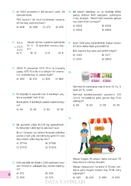 10. Ali 1340 yumurtanın 88 tanesini sattı. 34 16. Bir tekstil fabrikası bu yıl ürettiği 8642