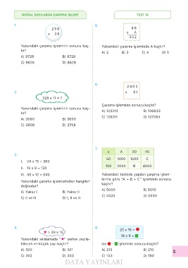 DOĞAL SAYILARDA ÇARPMA İŞLEMİ TEST 16