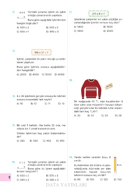 12. 4 9 6 Yandaki çarpma işlemi en yakın 17. 211 x 9 = ?
