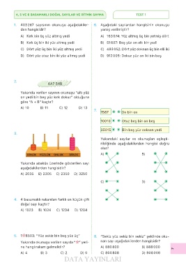 1. 403 267 sayısının okunuşu aşağıdakiler- 6. Aşağıdaki sayılardan hangisinin okunuşu
