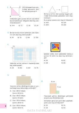 92 D) Alan: 48 birimkare A) 25 B) 35