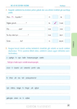 A� A� Aşağıdaki cümlelerde boş bırakılan yerlere gelecek olan soru eklerini örnekteki gibi işaretleyip Aşağıdaki cümlelerde boş bırakılan yerlere gelecek olan soru eklerini örnekteki gibi işaretleyip