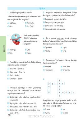 3� Aşağıdaki yabancı kelimelerin Türkçesi hangi hangi seçenektedir?