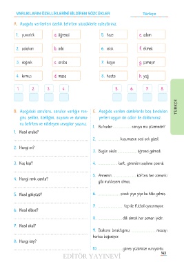 A� � Aşağıda verilenleri özellik belirten sözcüklerle eşleştiriniz.Aşağıda verilenleri özellik belirten sözcüklerle eşleştiriniz.