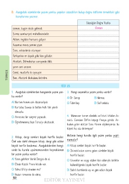 1. Aşağıdaki cümlelerden hangisinde yazım yan- 3� Hangi seçenekte yazım yanlışı vardır?