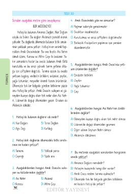 3� Aşağıdakilerden hangisi Amik Ovası’nı sula- B) Hatay’ın kuzeyinde hangi iller vardır?