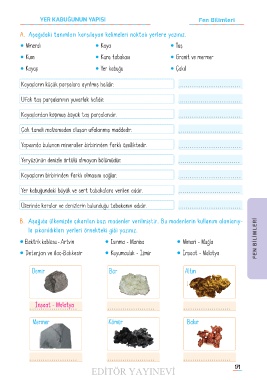 B� � Aşağıda ülkemizde çıkarılan bazı madenler verilmiştir. Bu madenlerin kullanım alanlarıy-Aşağıda ülkemizde çıkarılan bazı madenler verilmiştir. Bu madenlerin kullanım alanlarıy-