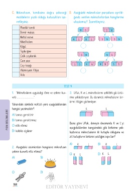 FEN BİLİMLERİ FEN BİLİMLERİ A) temas gerektirir Buna göre Ufuk, deneyin devamında K ve L’ yi
