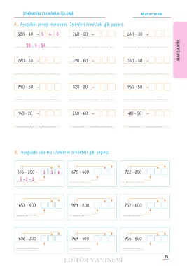B� � Aşağıdaki çıkarma işlemlerini örnekteki gibi yapınız.Aşağıdaki çıkarma işlemlerini örnekteki gibi yapınız.
