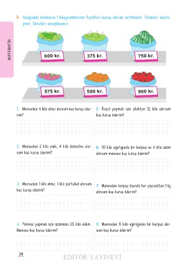 1. Manavdan 4 kilo elma alırsam kaç kuruş öde- 5� Reçel yapmak için çilekten 12 kilo alırsam