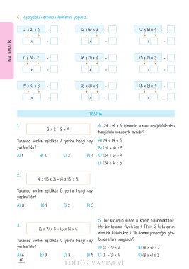Yukarıda verilen eşitlikte C yerine hangi sayı teren işlem hangisidir?