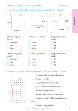 KM kenarı hangi şeklin EF kenarı kaç birimdir? Hangisi karenin kenarı