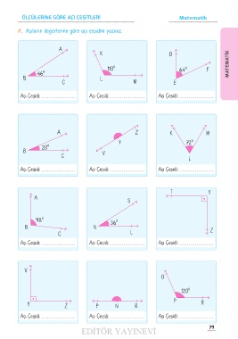 A� � Açıların değerlerine göre açı çeşidini yazınız.Açıların değerlerine göre açı çeşidini yazınız.