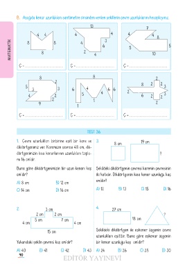 B� B� Aşağıda kenar uzunlukları santimetre cinsinden verilen şekillerin çevre uzunluklarını hesaplayınız.Aşağıda kenar uzunlukları santimetre cinsinden verilen şekillerin çevre uzunluklarını hesaplayınız.