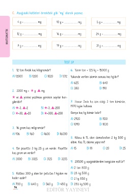 C� � Aşağıdaki kütleleri örnekteki gibi "mg" olarak yazınız.Aşağıdaki kütleleri örnekteki gibi "mg" olarak yazınız.
