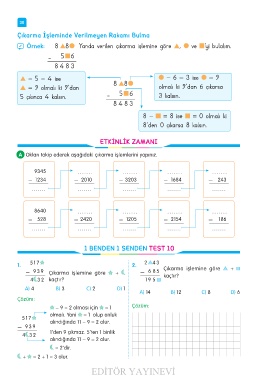 ̛ Örnek: 8 8 Yanda verilen çıkarma işlemine göre , ve ’yi bulalım.