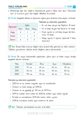 { Not: Karışık hâlde bulunan bilgileri daha düzenli hâle getirmek için tablo kullanılır.