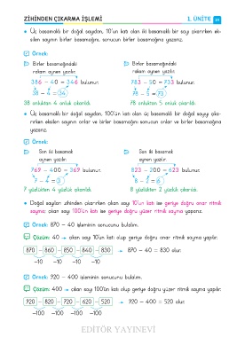 ̛ Örnek: 870 - 40 işleminin sonucunu bulalım.