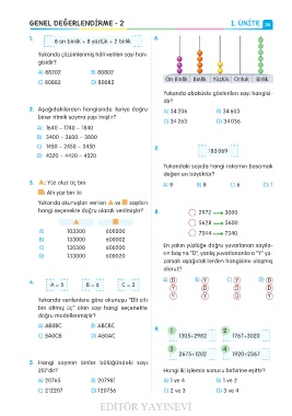 3. : Yüz otuz üç bin A) 9 B) 8 C) 6 D) 1