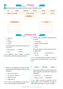 A Besinlerle ilgili boş bırakılan kısımlara uygun ifadeleri yazınız.