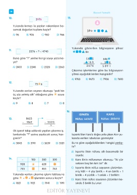 göre + + işleminin sonucu kaçtır? D) Kars ilinin nüfus sayısının çözümlenme-