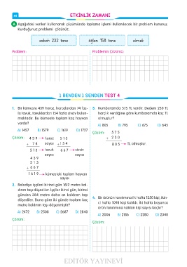 A Aşağıdaki verileri kullanarak çözümünde toplama işlemi kullanılacak bir problem kurunuz.