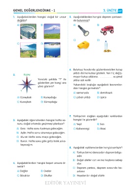 1. Aşağıdakilerden hangisi doğal bir unsur 5. Aşağıdakilerden hangisi deprem çantasın-