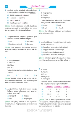 Çözüm: Tomografi, ultrason ve MR sağlık ala- lan ürünlerdir. Telefon ve bilgisayar iletişim ala-