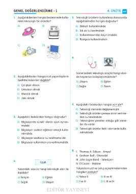 1. Aşağıdakilerden hangisi beslenmede kulla- 5. Teknolojik ürünlerin kullanılması konusunda