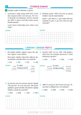 1. Cevat Bey’in aylık maaşı 3478 TL’dir. Cevat 2. Belediye işçileri 7200 m’lik yolu üç günde