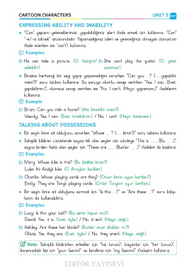 Ő He can take a picture. (O, fotoğraf Ő She can’t play the guitar. (O, gitar