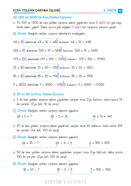 KISA YOLDAN ÇARPMA İŞLEMİ 3. ÜNİTE 59