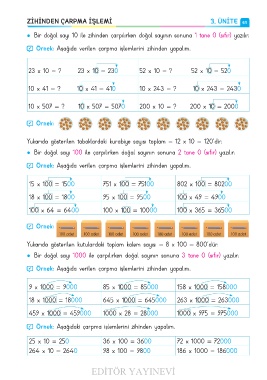 ZİHİNDEN ÇARPMA İŞLEMİ 3. ÜNİTE 61