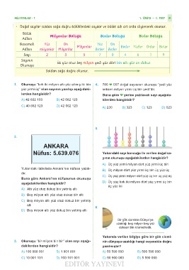 MİLYONLAR - 1 1. ÜNİTE – 1. TEST 9