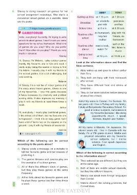 6. Stacey is doing research on games for her 7. ABBY TONY