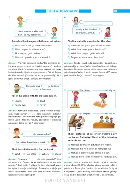 kerleme yaparım ve sonra ödevimi yaparım.” cevabını göre aradığımız soru “What time (Saat kaçta)” ile baş-