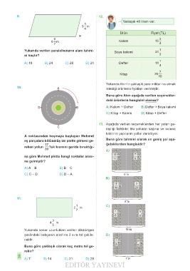 10. A istediği ürünlerin fiyatları verilmiştir.