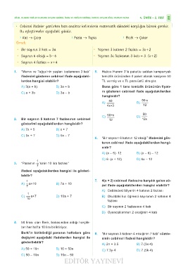 SÖZEL OLARAK VERİLEN DURUMA UYGUN CEBİRSEL İFADE VE VERİLEN CEBİRSEL İFADEYE UYGUN SÖZEL DURUM YAZMA 4. ÜNİTE – 2. TEST 89