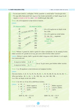 1. ÜNİTE KONU ÖZETİ Çözüm: Mehmet 4 günde, Salih 6 günde bir nöbet tutuyorsa ortak nöbetleri 4 ve 6 sayıla-