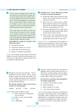 Zaman: Belli değildir. la anlatılmıştır. Bu nedenle D seçeneğine ulaşılamaz.