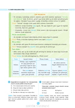 y Bir sözcüğün, kullanıldığı cümlenin anlamına göre farklı anlamlar taşımasına “Sözcükte