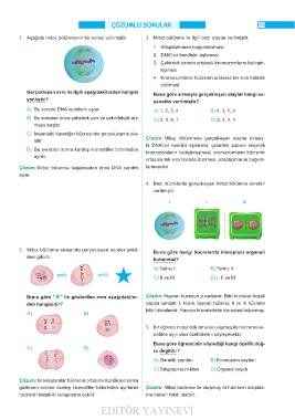 bilir. Çözüm: Mitoz bölünmede gerçekleşen olaylar sırasıy-