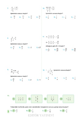 9. 18 : 0,09 12. 1− 1 işleminin sonucu kaçtır?