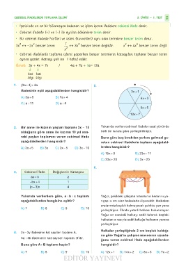 CEBİRSEL İFADELERDE TOPLAMA İŞLEMİ 3. ÜNİTE – 1. TEST 55