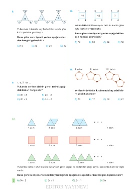 Yukarıda verilen örüntülerde kullanılan şekil sayısı ile kullanılan çizgi sayısı arasında belli bir ilişki