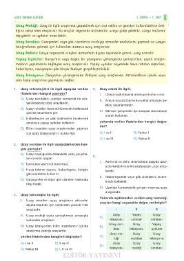 UZAY TEKNOLOJİLERİ 1. ÜNİTE – 1. TEST
