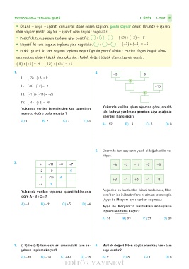 3. (-8) ile (+5) tam sayıları arasındaki tam sa- 6. Mutlak değeri 5'ten küçük olan kaç tane tam