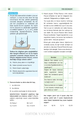 tabanındaki sıvı basıncı artar? (Zeytin- Her doğru yanıt için 5 puan alıp her