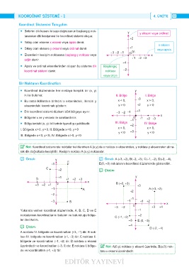 üzerindedir ve koordinatları (-3, 0) dır. E noktası I. bölge- { Not: A(0,y) noktası y ekseni üzerinde, B(x,0) nok-