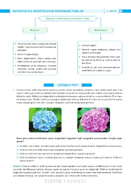 Çözüm: Ortanca bitkisinin asitli toprakta pembe, bazik toprakta mavi çiçek açması modifikasyona örnek olarak